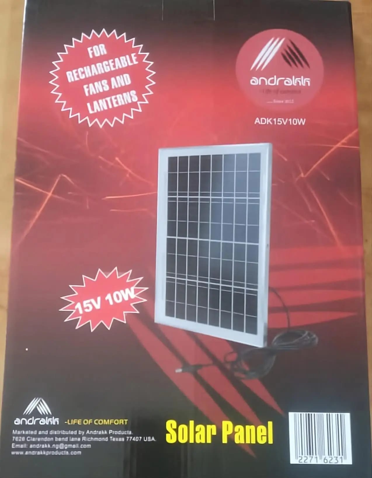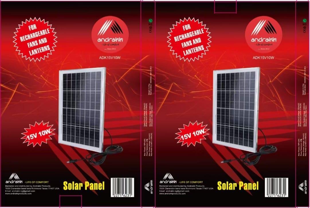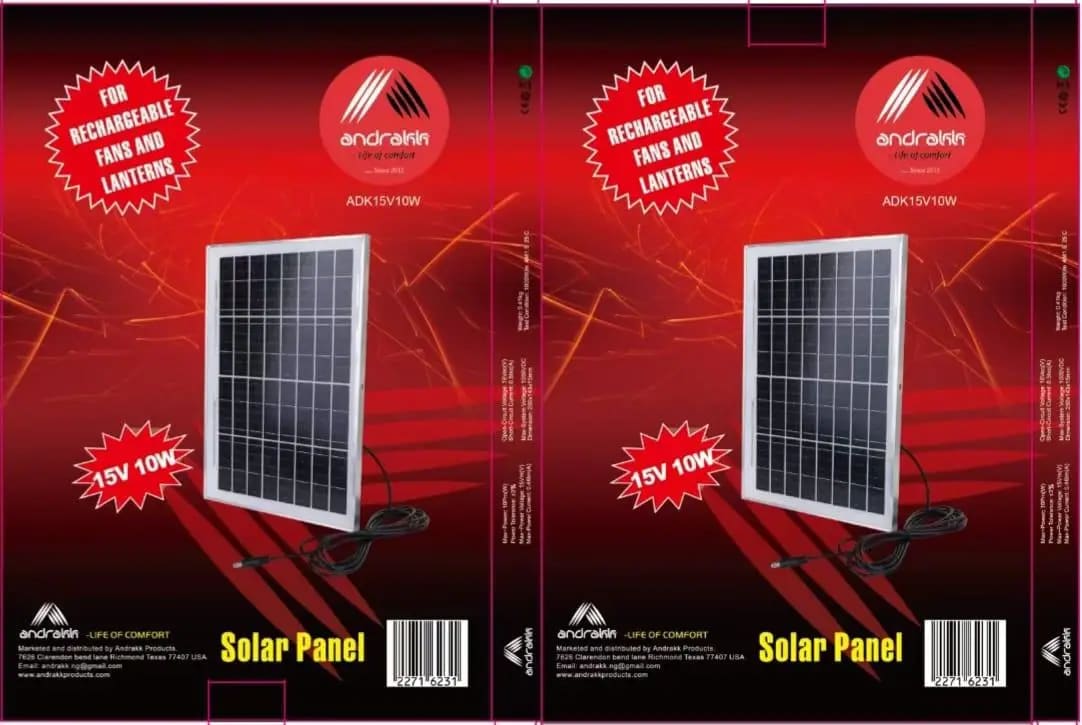 Built to withstand tough weather conditions, the ADK 15V 10W Solar Panel is perfect for tropical and coastal areas, delivering reliable solar power for your appliances. Whether for home or outdoor use, this solar panel is compatible with ALL Andrakk Rechargeable Fans, it guarantees long-lasting performance and optimal energy efficiency for your appliance.