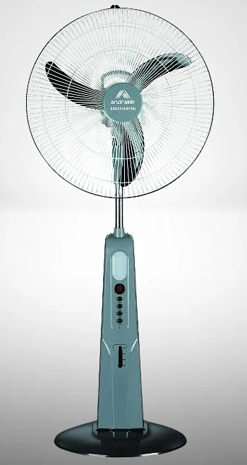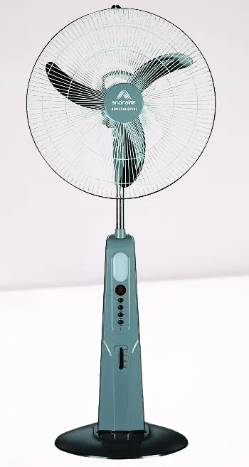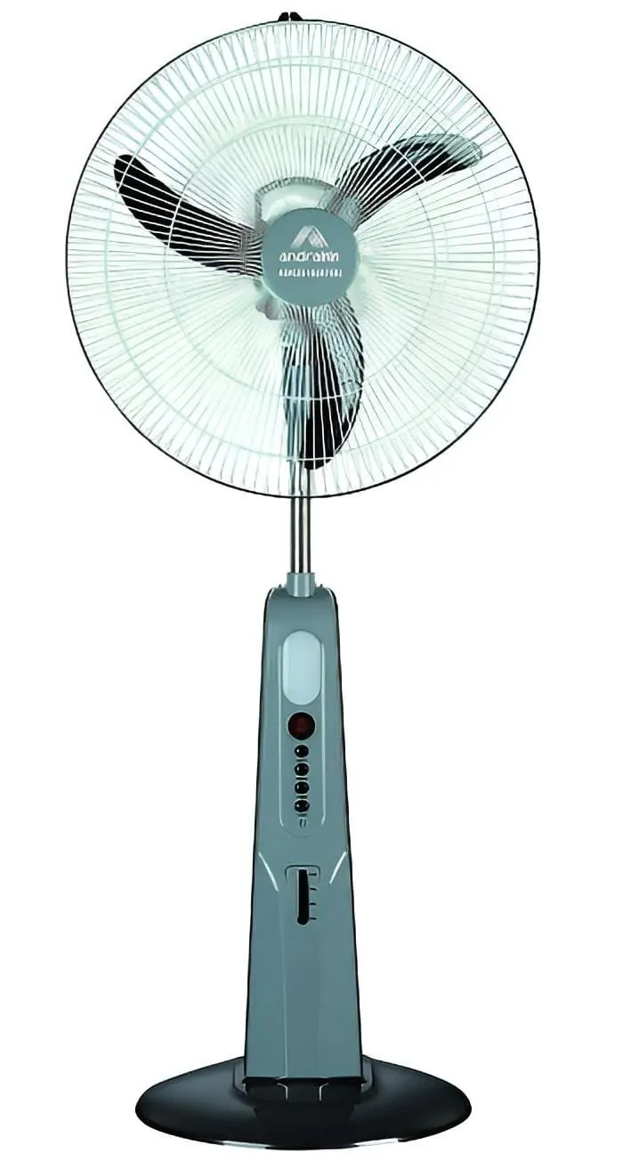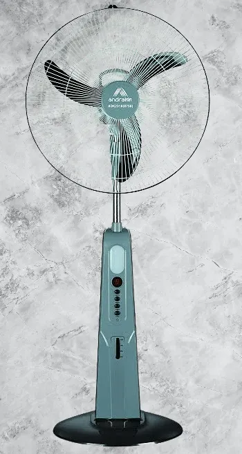 The ADK2318 provides 5-9 hours of operation on a full charge and features overcharge and discharge protection, ensuring long battery life. It can also be equipped with the Andrakk Solar Panel (ADK 18V 20W) as an additional charging option or in case of extended power outages. The battery is replaceable by nature and offers extended usability, while the back switch allows for easy operation. Its automatic power-switching feature allows instant transitions to battery mode during an outage, ensuring uninterrupted cooling. With a sturdy base and portable design, the rechargeable fan can be easily moved to any desired location, making it a must-have for all-season comfort.